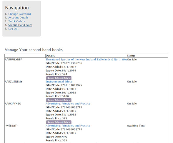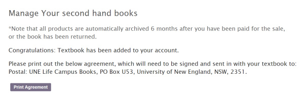 United Campus Bookshops offer you a new and exciting method of selling your old UNE textbooks. Our system offers them for sale on line to a substantial marketplace and we have a new and large space in store at the University of New England. You can sell your books at up to 80% of current new price. We charge 34% of your price as commission (plus GST).